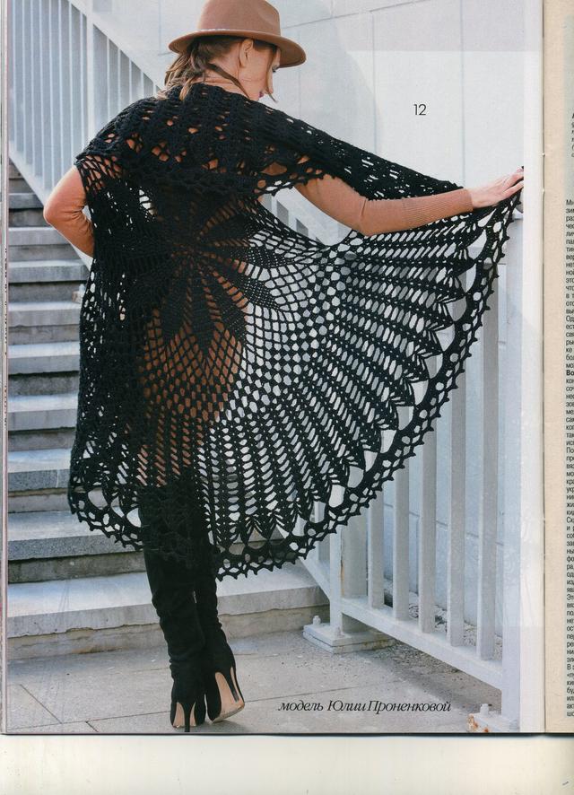 Спідниця буде без швів, і щоб її одягнути, потрібно буде подолати саму широку частину, наприклад стегна. Вимірюємо обхват стегон. Ділимо цю величину на 6,28. Отримуємо радіус кола, який потрібно прибрати з серветки. І на конкретній схемі креслимо коло, отриманим радіусом, вважаємо ряди, починаємо в'язати. І плетемо до бажаної довжини. Внутрішній коло обв'язуємо, пришиваємо гумку. Спідниця готова. Такі спідниці добре виглядають, є вони «піднімаються». Краще, якщо їх в'язати з віскози, шовку або тонкої пряжі.